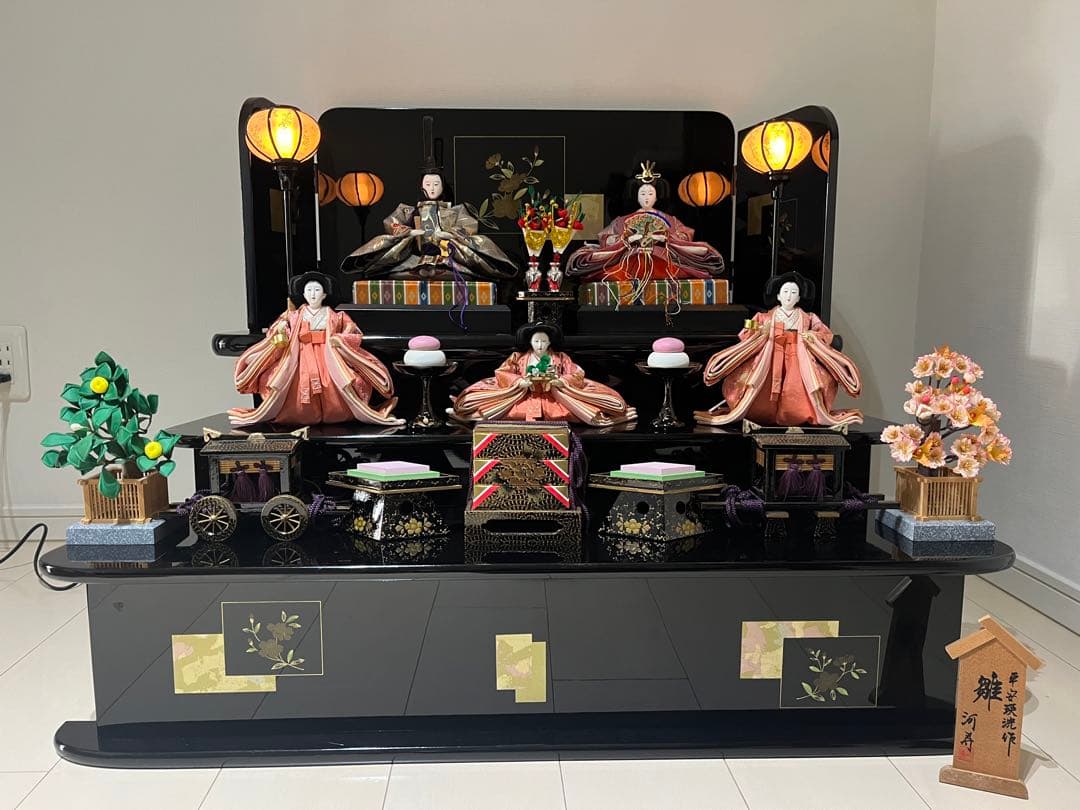 伝統的な雛人形セット、ひな祭りに最適。お雛様雛人形豆雛小さい雛人形。東京久月 親王五人飾り収納用三段セット・頭:梛葉 作・アウトレット商品。- 種類: 雛人形 木目込み雛人形- セット内容: 15体の雛人形、屏風、飾り物- 特徴: 伝統的な衣装と装飾品、レトロ、年代物- 用途: ひな祭りの飾り付けご覧いただきありがとうございます。ローズオニール キューピー おひなさま3段飾りレビュー